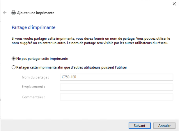 Chercher « ajouter une imprimante » dans le menu Windows et suivez les capture d’écrans ci-dessous.